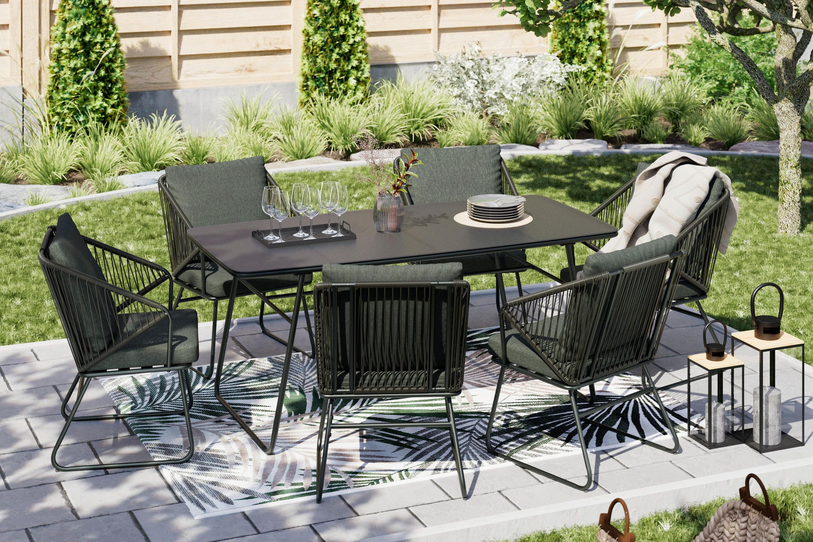 Metalna garnitura upečatljivog izgleda pretvorit će vaš vrt u opuštajuće mjesto za dvoje. Profinjenost bijele ili elegancija crne boje, u kombinaciji sa staklenim ili keramičkim mozaikom, osvježit će svako vaše jutro. Male lanterne i jastučići za sjedenje cvjetnog uzorka ili pastelnih nijansi idealno će upotpuniti metalne setove te stvoriti neodoljiv kutak za sjedenje. Dojam upotpunite odgovarajućom rasvjetom i cvijećem te uživajte u svojoj maloj oazi s daškom vintage stila.