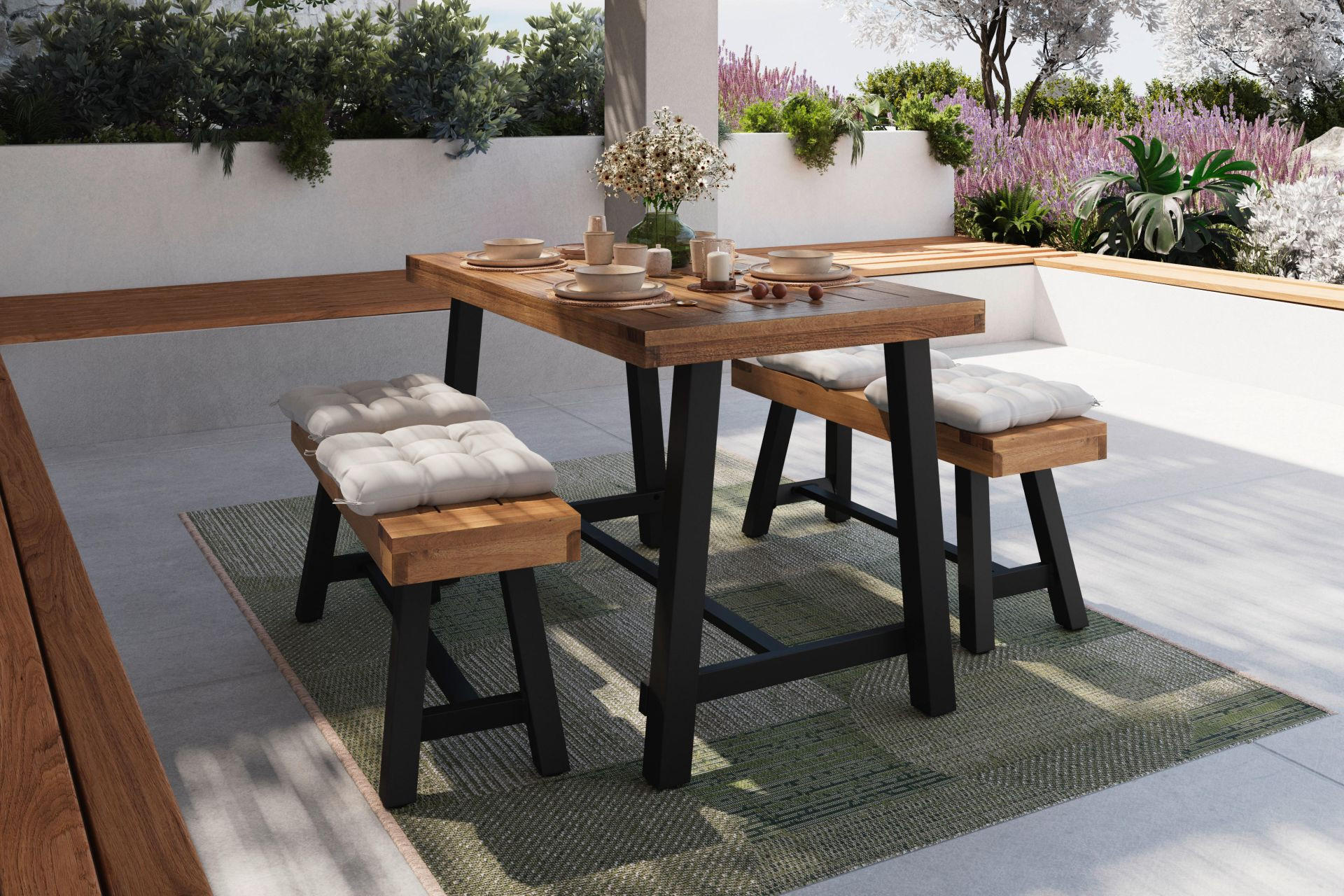 Prirodan i privlačan izgled čini drveni vrtni namještaj pravim klasikom za opremanje doma na otvorenom. Krasi ga izrazita udobnost jer je drvo kao prirodan materijal ugodno na različitim temperaturama i ne zadržava ni toplinu ni hladnoću. Uz odgovarajuću njegu, drveni materijal je također izuzetno dugotrajan. Prirodni "znakovi starenja", kao što je siva patina uzrokovana vremenom, mogu se jednostavno ukloniti. Po potrebi drveni vrtni namještaj lagano pobrusite i zatim premažite lakom za drvo. Ovisno o trendu i ukusu, uz malo vještine može se jednostavno obojiti u novu trendovsku boju.