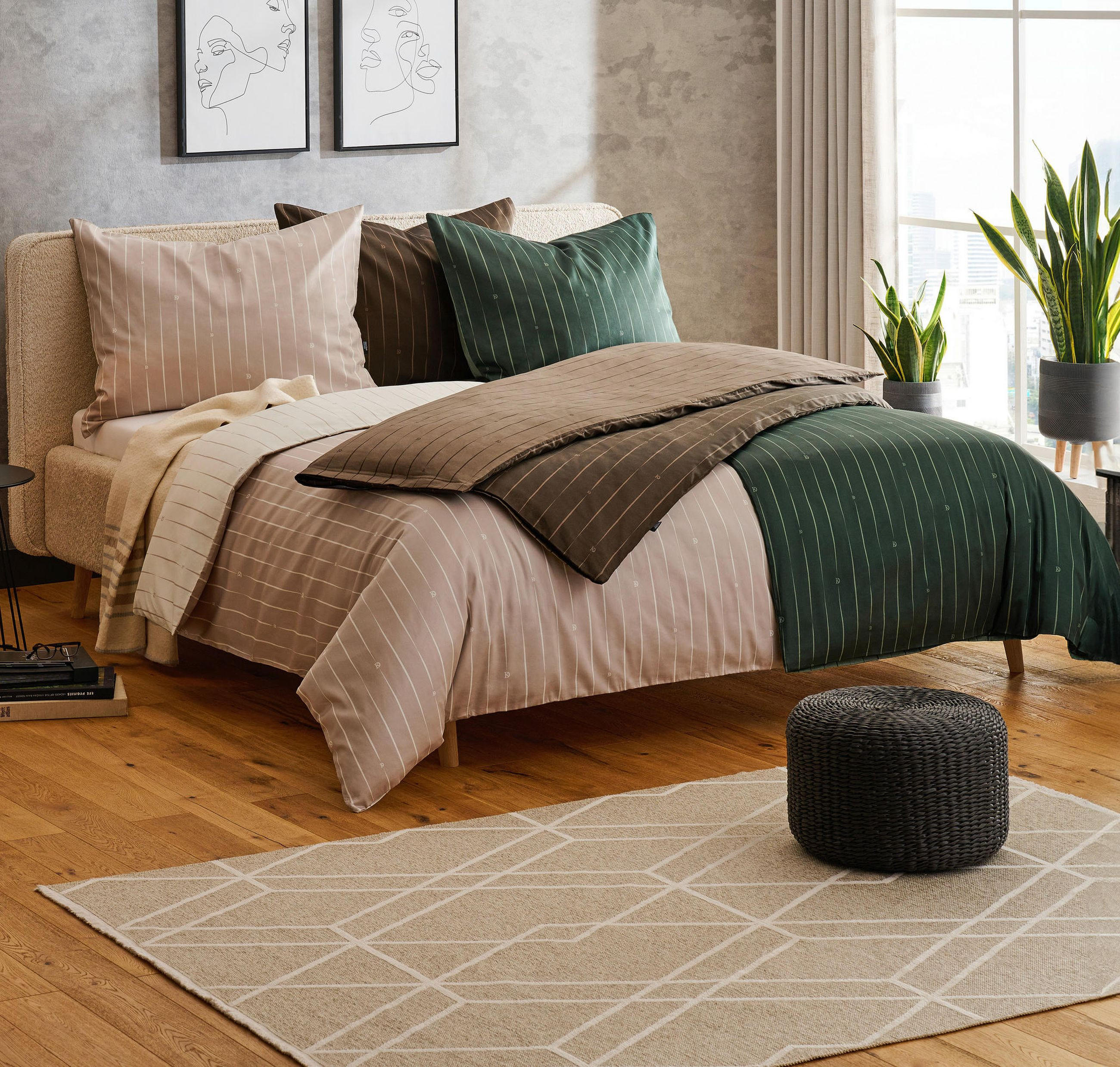 Ništa ne opušta više od ležanja u krevetu u društvu mirisne posteljine i tople deke. Mekana tkanina miluje cijelo tijelo, a stres svakodnevnog života nestaje. Fini materijali i dobra izrada jamče slatke snove. Najčešće je posteljina za krevet izrađena od pamuka. To nije neobično jer je to materijal koji diše i upija te pruža dobar osjećaj na goloj koži. Pronađite ono što volite, uživajte u toplom flanelu, elastičnom jersey-u ili stvorite luksuzniji dojam sobe glatkom površinom na satenu. Toplu deku iskoristite kako biste svoj krevet pretvorili u oazu poslijepodnevnog odmora. Istovremeno, deke štite našu posteljinu od prašine i prljavštine. Ubacite nekoliko ukrasnih jastuka da biste kreirali oazu mira.