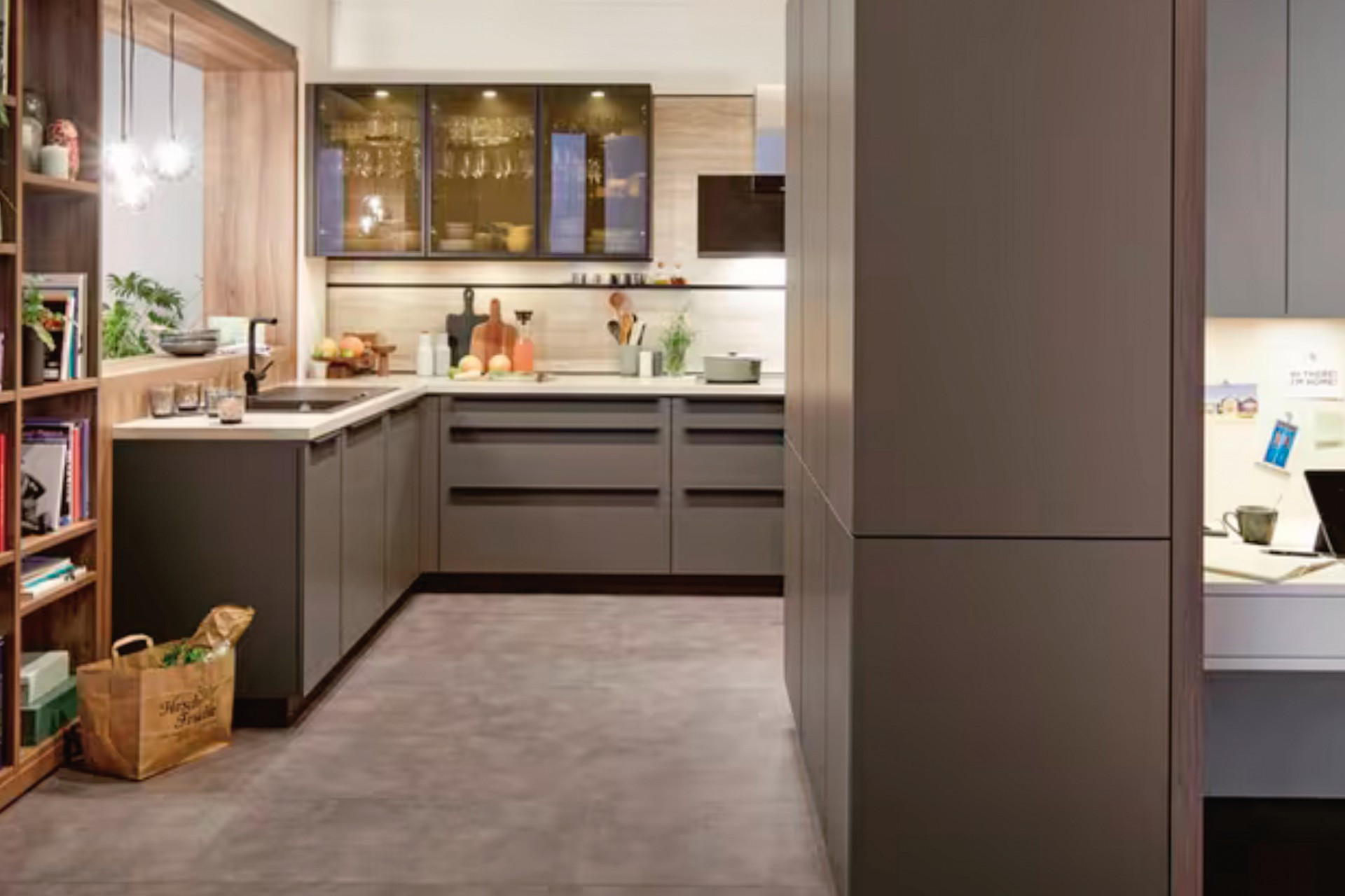 I u čajnoj kuhinji se pripremaju „ozbiljna” jela, a ova proširena verzija posebno je inspirativna zahvaljujući kombinaciji hladnih i toplih boja. Dobro kombinirani donji moduli dat će dovoljno prostora za smještaj posuđa i pribora.