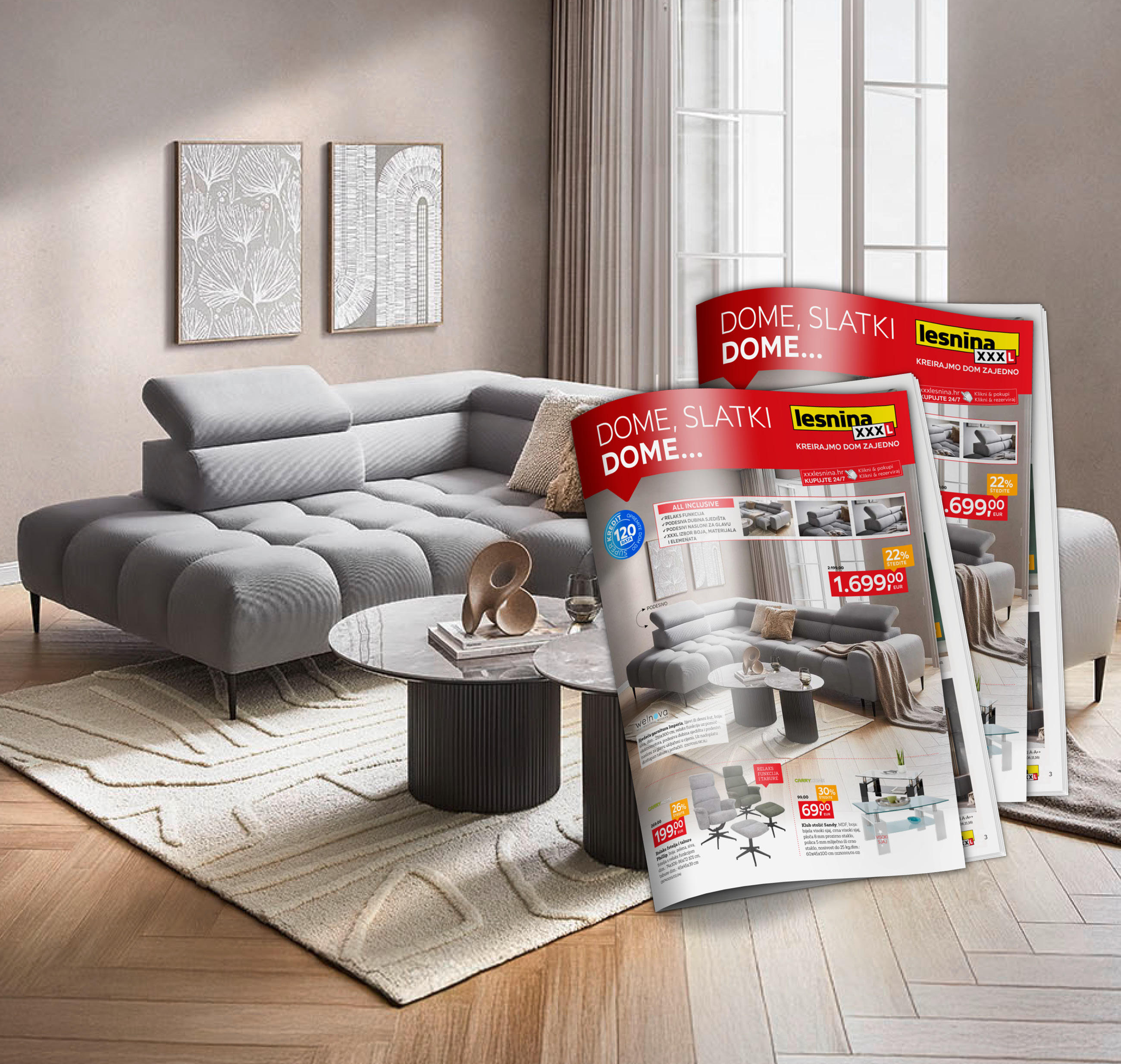 Opremite svoj dom modernim namještajem i pretvorite ga u funkcionalno i ugodno mjesto. Udobna kutna garnitura u kombinaciji s foteljom učinit će dnevni boravak vašim omiljenim kutkom za opuštanje i druženje. Ako na raspolaganju imate prostoriju manjih dimenzija, idealan izbor je trosjed ili dvosjed.