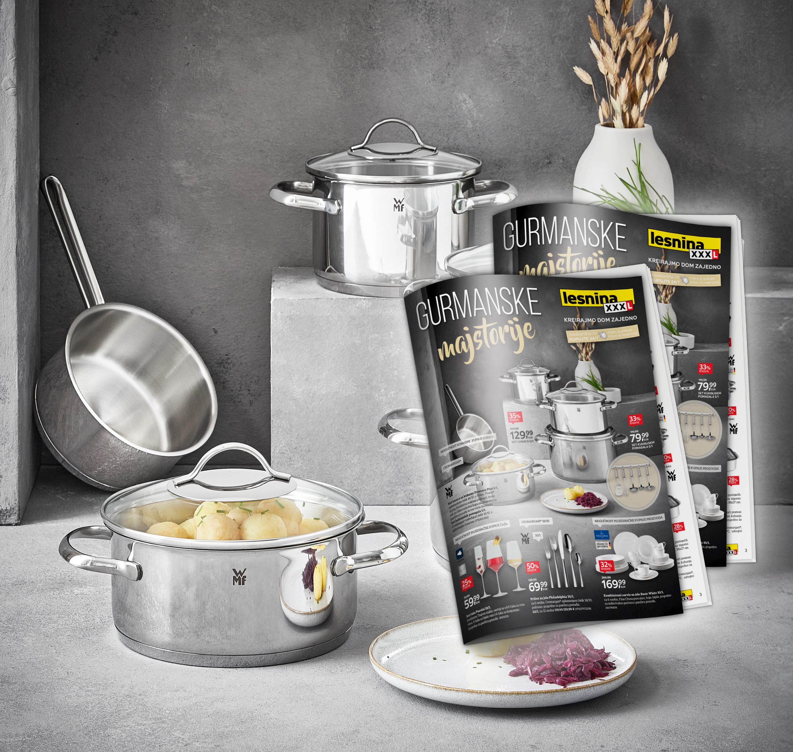 Što bi moglo bolje upotpuniti vašu strast prema kulinarskim užicima od lijepo postavljenog stola? Elegantni tanjuri, šalice, čaše i ostali dijelovi servisa stvaraju idealnu pozornicu za sve gastronomske delicije koje spremate. Porculansko posuđe unosi sofisticiranost i čaroliju u svaki obrok, pretvarajući svakodnevno blagovanje u pravi užitak za oči i nepce. Savršen obrok zahtijeva i kvalitetno kuhinjsko posuđe – odaberite kvalitetne lonce i tave koji ravnomjerno raspoređuju toplinu i čuvaju okuse jela.