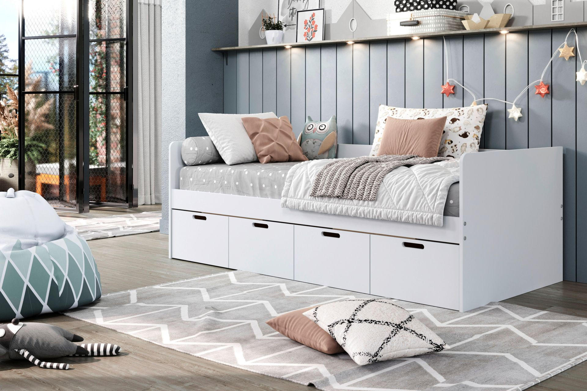 Što je soba manja, u njoj brže nastane nered. Zato je važno opremiti sobu s puno prostora za pohranu, što zahtijeva kreativna rješenja. Pravo čudo su kreveti s prostorom za pohranu, dodatne ladice ispod kreveta ili boxspring kreveti s uključenim prostorom za odlaganje koji se podižu ravno s prednje strane ili bočno.