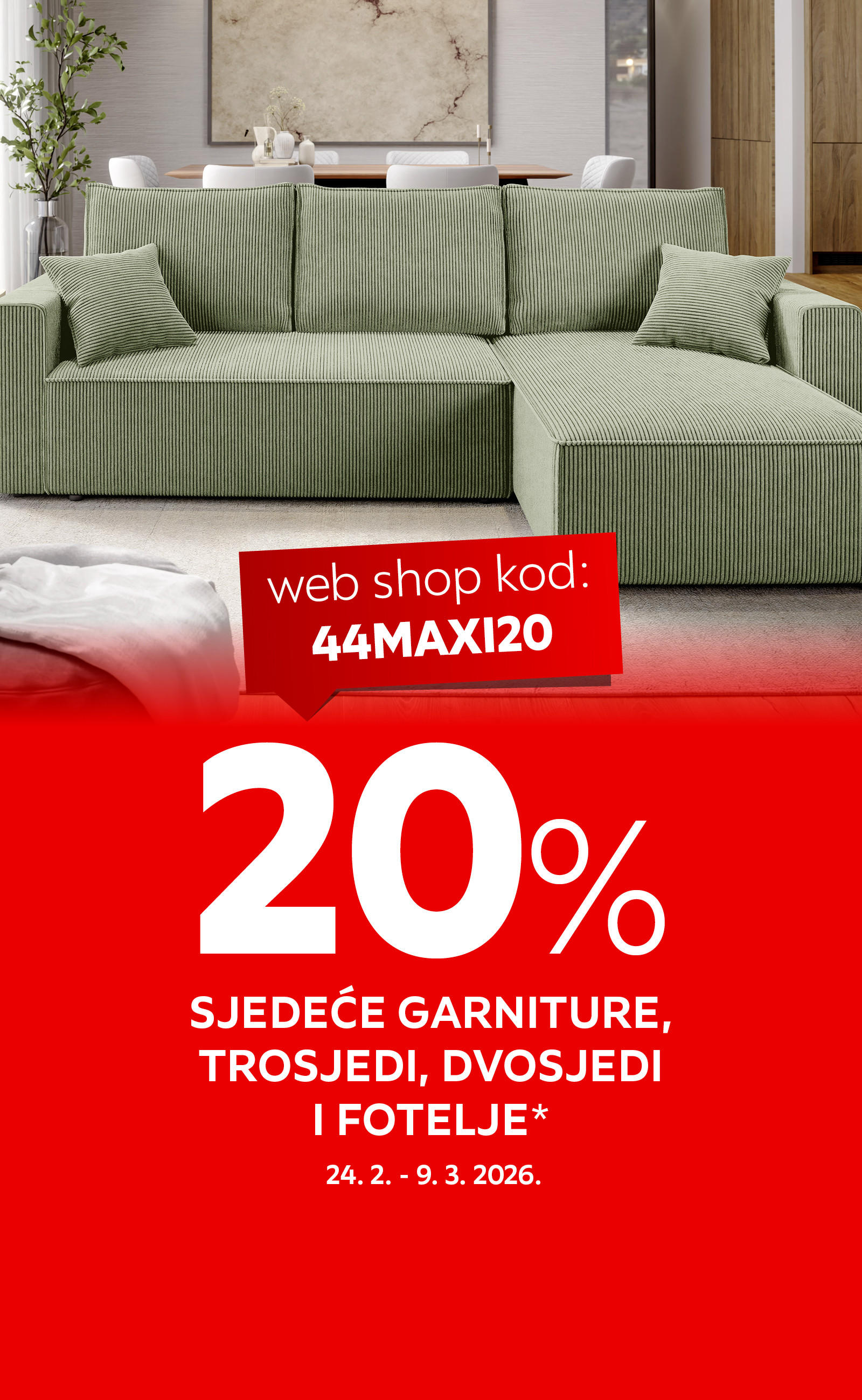 Dovršite niz. Slobodno vrijeme, dobra knjiga, topla deka, šalica omiljenog napitka i ...? Njezino veličanstvo – fotelja! Upadljiv komad namještaja i kao dio seta, a osobito kao zaseban element zanimljivog dizajna ili uzorka. Često su opremljene relaks funkcijama, mogućnošću ljuljanja, spuštanja leđnog dijela ili podizanja nogu. Potpunu opuštenost i rehabilitaciju postići ćete u masažnoj fotelji koja će nakon dugog dana iz tijela odagnati svu napetost i stres. Male sobe osobito će profitirati foteljom koja se može razvući u ležaj i čija je funkcionalnost nenadmašiva. Dajte mašti na volju, birajte između kožnih ili baršunastih materijala, životinjskih, cvjetnih ili patchwork uzoraka. XXXL izbor je toliki da svatko može pronaći svoj naslonjač iz snova.