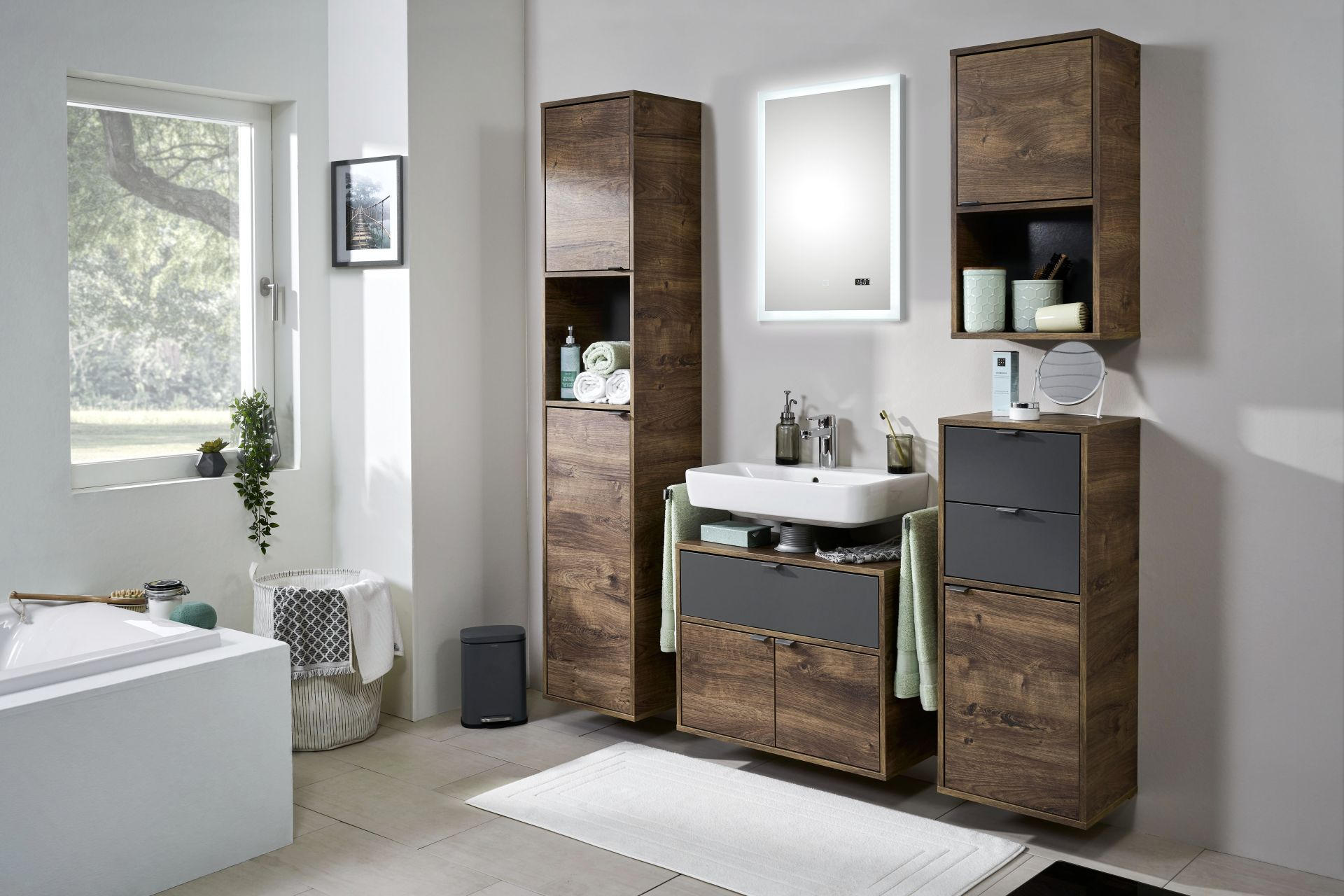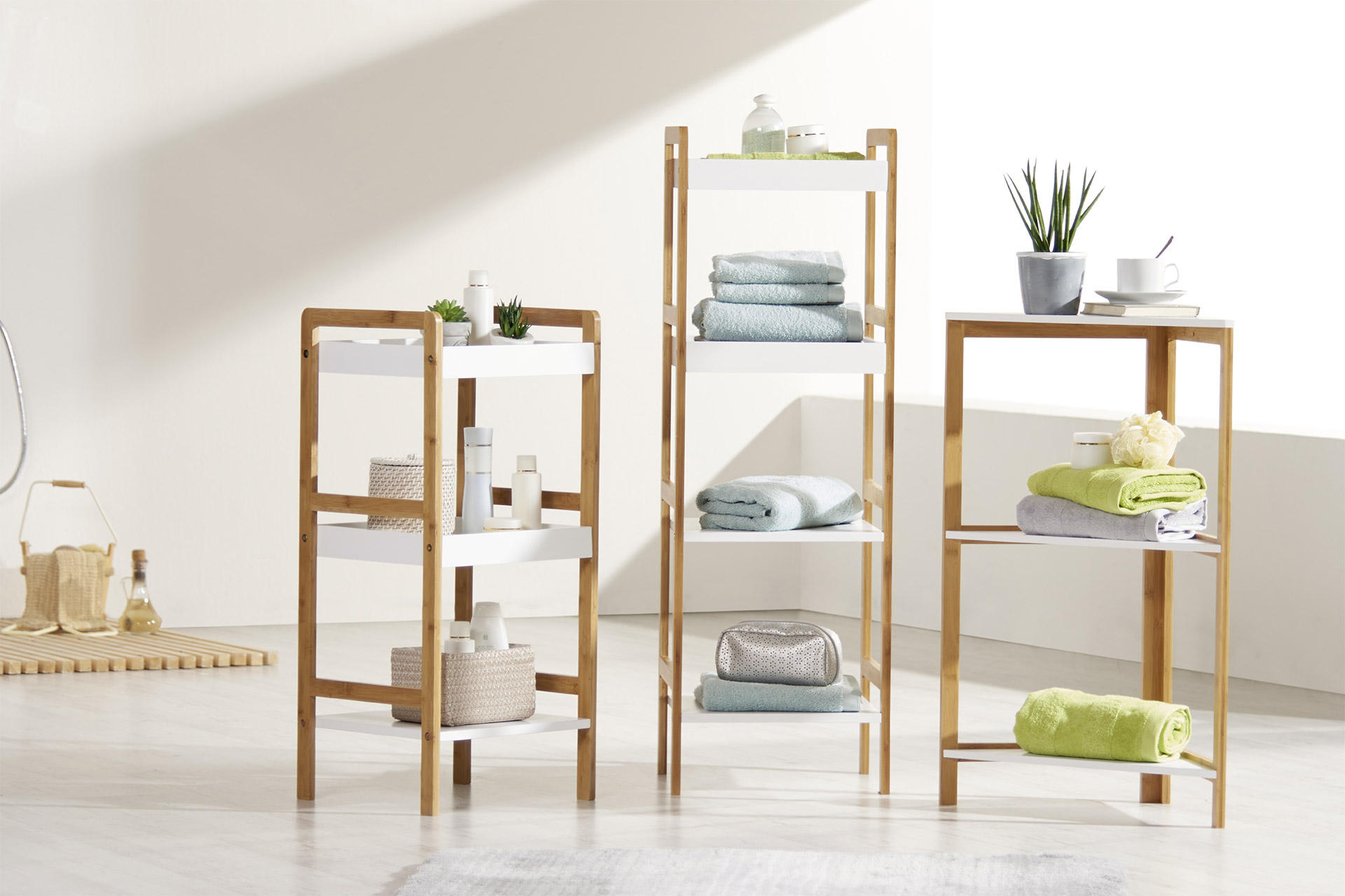 visoki elementi male dubine. Zahvaljujući visini, nude mnoštvo prostora za odlaganje. Osim mjesta za kupaonske dodatke, unijet će dinamiku u prostor te biti zanimljiv detalj. Dobro promislite o vrsti i rasporedu elemenata – prije svega, moraju osigurati dovoljno prostora, ali ne smiju smetati prilikom kretanja po kupaonici.