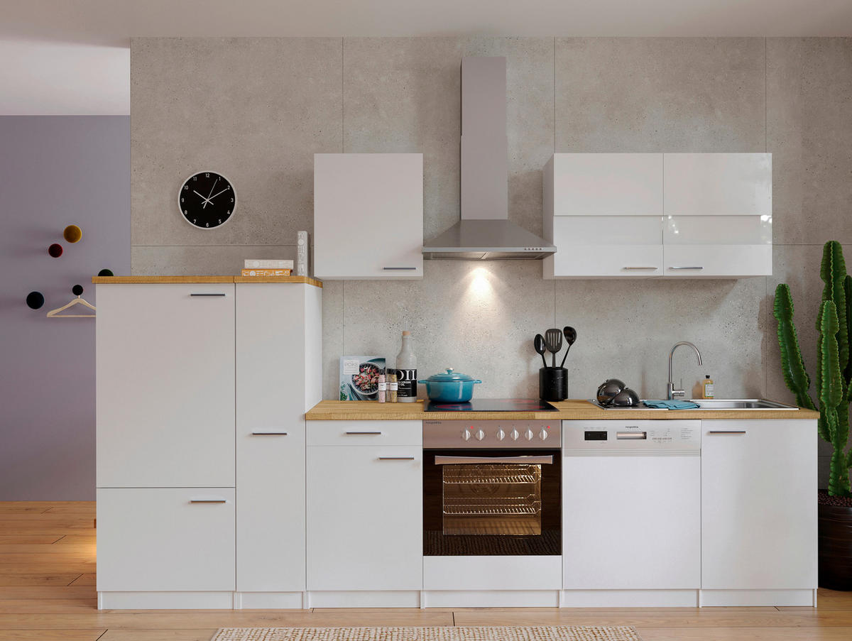 BLOK KUHINJA S APARATIMA  bijela  - bijela/boje oraha, Basics, drvni materijal/metal (310cm) - Respekta
