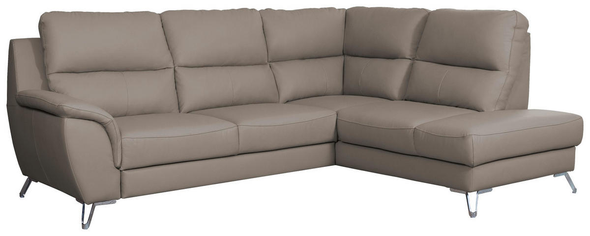 SJEDEĆA GARNITURA tekstil, koža  sivo-smeđa   - sivo-smeđa/boje kroma, Moderno, koža/tekstil (246/99/200cm) - Celina Home