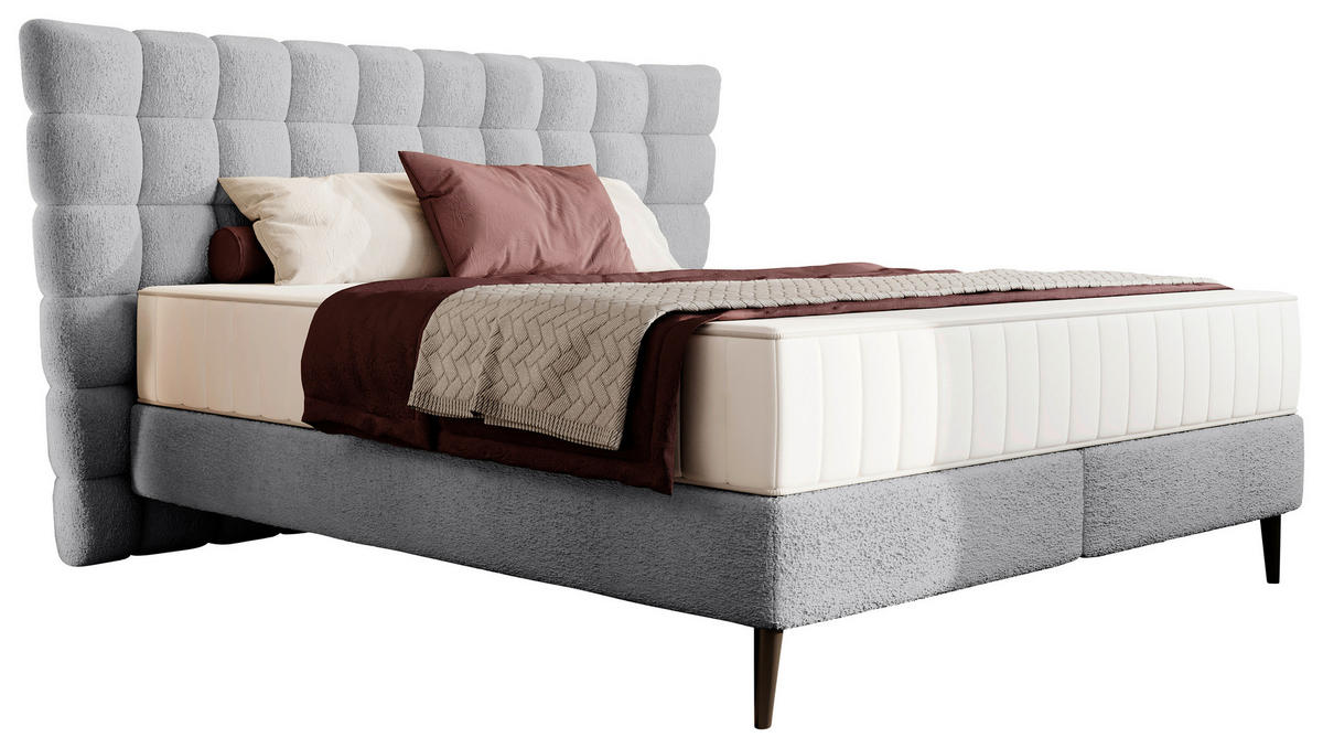 BOXSPRING KREVET 180/200 cm     svijetlo siva  - svijetlo siva/crna, Design, drvni materijal/tekstil (180/200cm) - EsposaEsposa