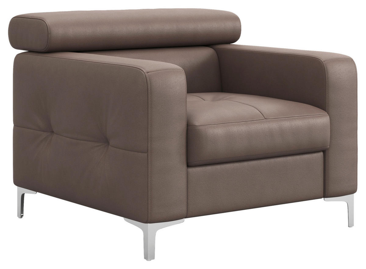 FOTELJA koža  svijetlo smeđa   - svijetlo smeđa/boje kroma, Design, koža/metal (99/78-92/106cm) - Livetastic