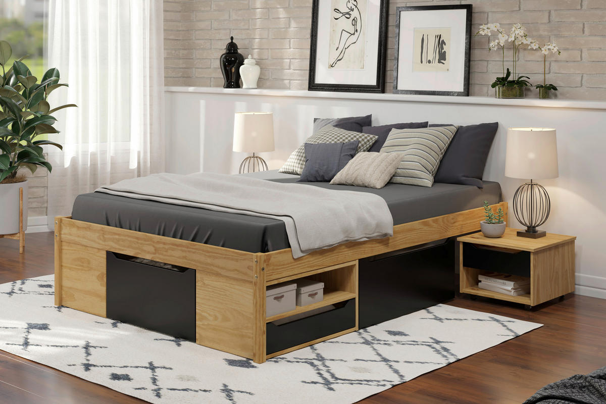 MID.YOU KREVET S PROSTOR. ZA ODLAGANJ 90/200 cm prirodne boje, crna