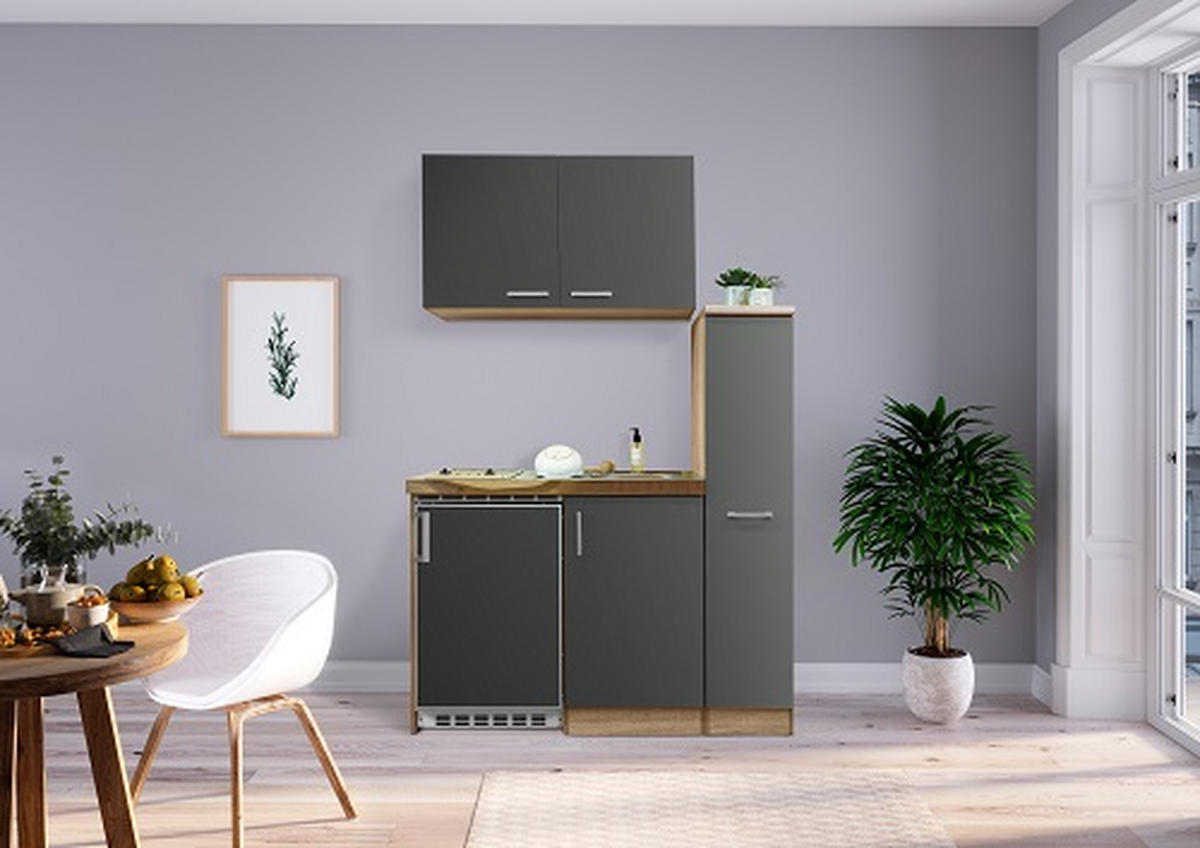 MINI KUHINJA  siva, boje hrasta  - siva/boje hrasta, Moderno, drvni materijal/metal (130/146/60cm) - Respekta