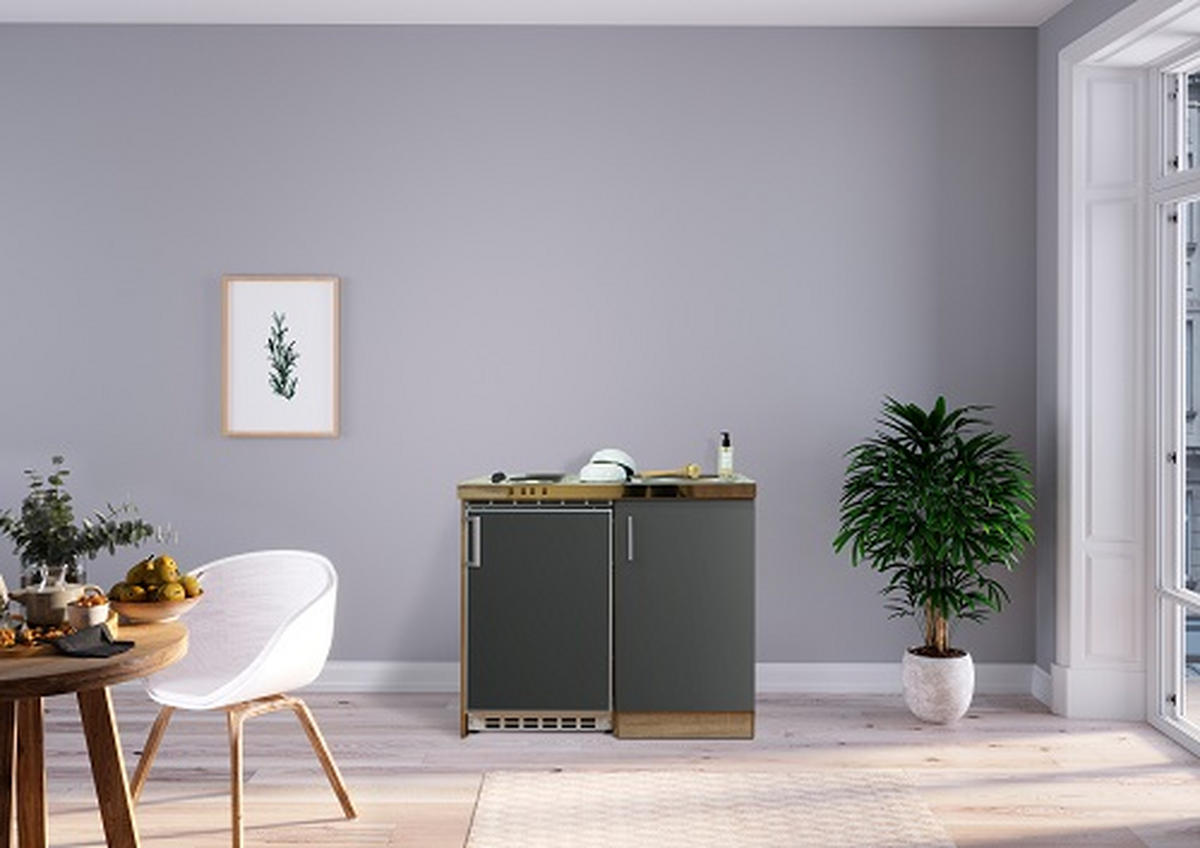MINI KUHINJA  siva, hrast Sonoma  - siva/boje oplemenjenog čelika, Moderno, drvni materijal/metal (100/87/60cm) - Respekta