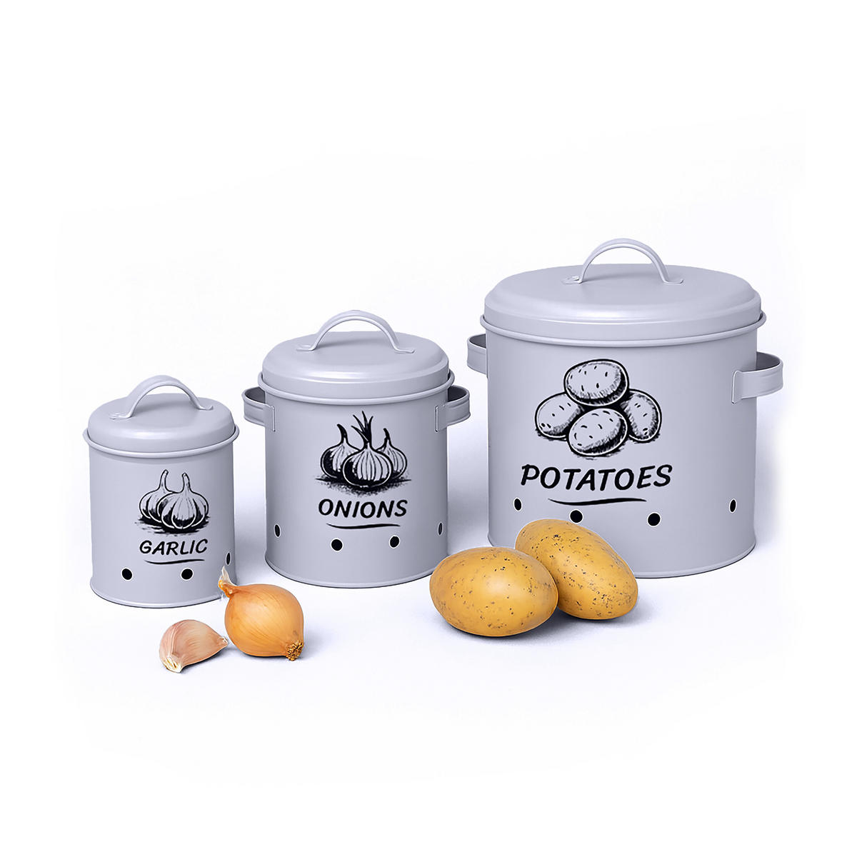 3XKUTIJE za krumpir - siva, metal - RelaxdaysRelaxdays