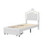 TAPECIRANI krevet 90x200 cm s LED svjetlima i ladicama, letvičastim podom i naslonom, bijeli