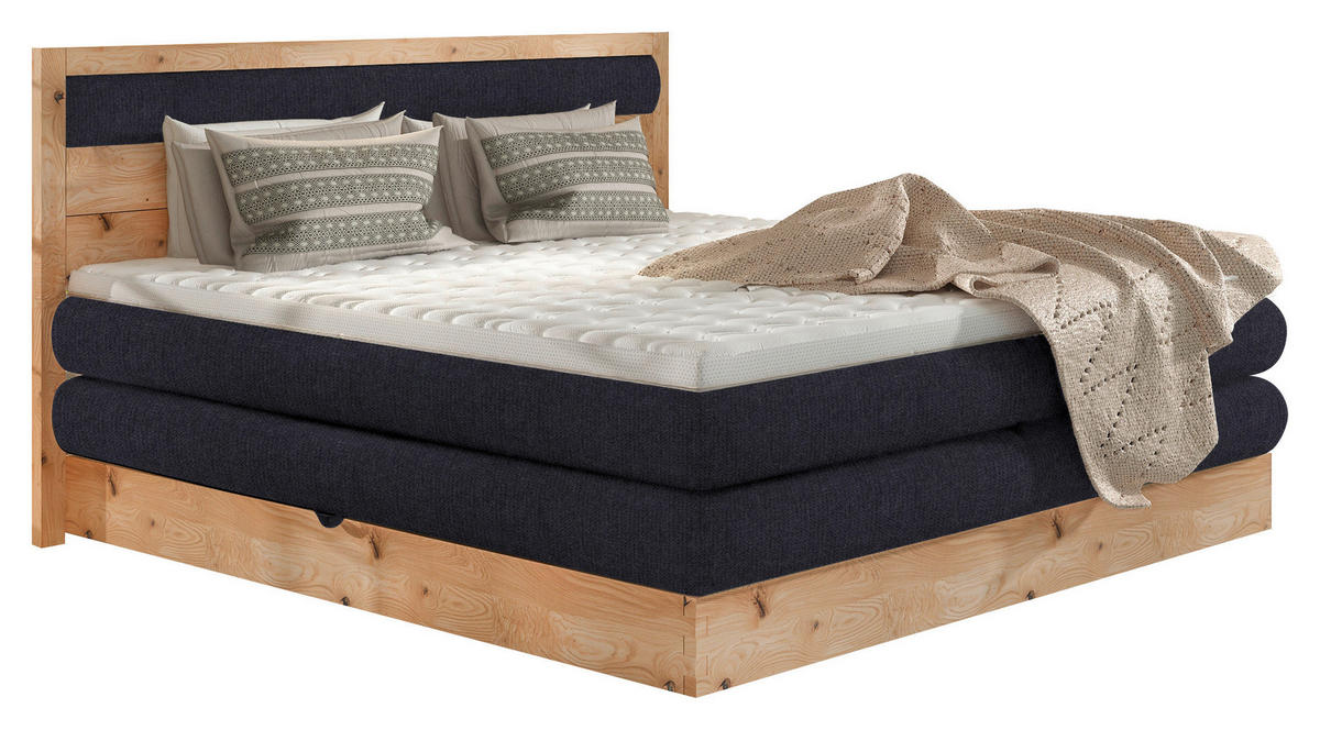 BOXSPRING KREVET 160/200 cm boje hrasta, tamno plava