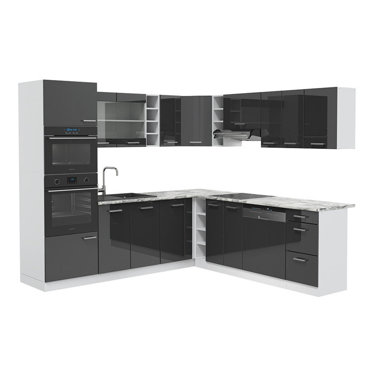 KUHINJA U OBLIKU SLOVA L R-Line Antracit visokog sjaja 247 x 60 +, RP mramor - bijela/crna visoki sjaj, drvni materijal (247/81.6/60cm) - Vicco