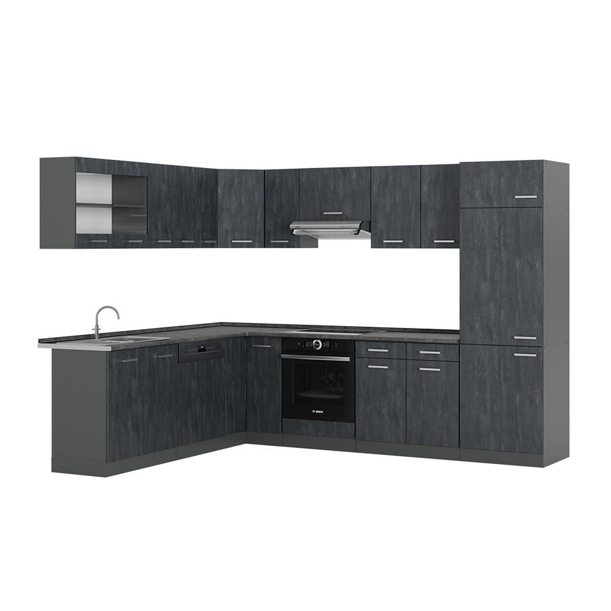 KUHINJA U OBLIKU SLOVA L R-Line Crni Beton/Antracit 287 x 46 + bez radne ploče - crna/antracit, drvni materijal (287/81.6/46cm) - Vicco