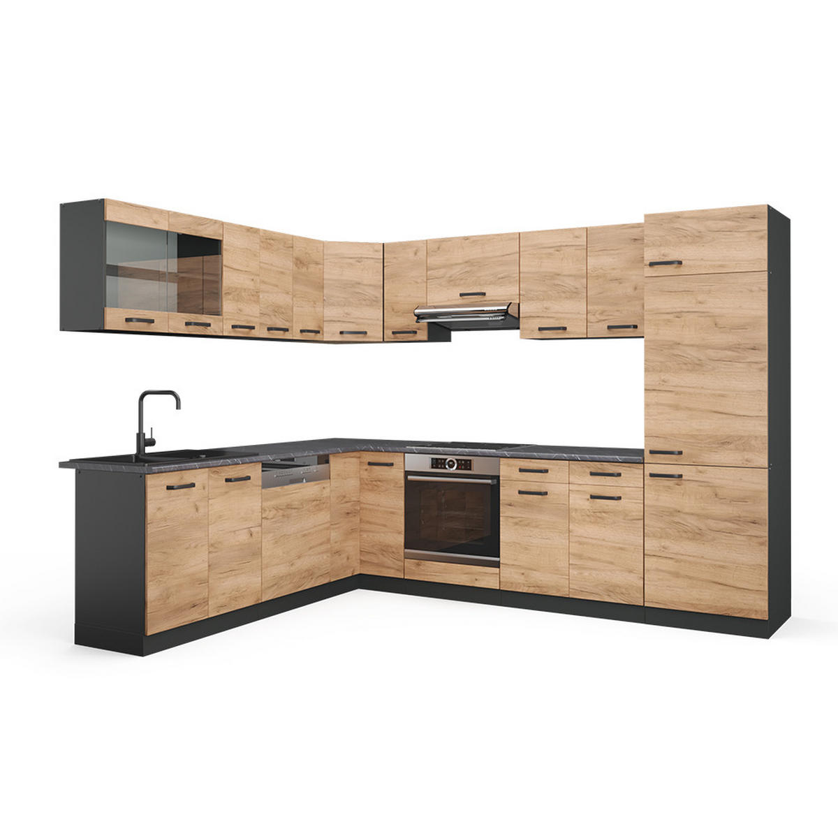 KUHINJA U OBLIKU SLOVA L R-Line Zlatna Snaga Hrasta / Antracit 287 x 46 + bez radne ploče - hrast medunac/antracit, drvni materijal (287/81.6/46cm) - ViccoVicco