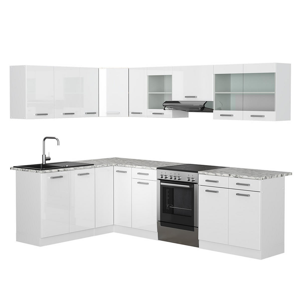 KUHINJA U OBLIKU SLOVA L Rick Bijela Sjajna / Bijela 270 x 60 +, RP mramor - bijela/bijela visoki sjaj, drvni materijal (270/81.6/60cm) - Vicco