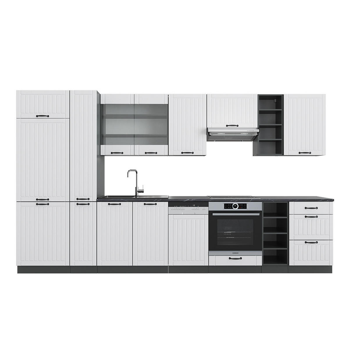 KUHINJSKI BLOK Fame-Line Seoska Bijela / Antracit 355 cm s visokim ormarićem, bez radne ploče - bijela/antracit, drvni materijal (355/81.6/46cm) - ViccoVicco