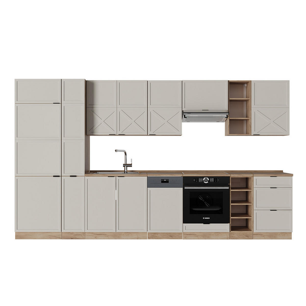 KUHINJSKI BLOK Fame-Line Sivo-Bež/Zlatna Snaga Hrasta 355 cm , RP Hrast - hrast medunac/siva, drvni materijal (355/81.6/60cm) - Vicco