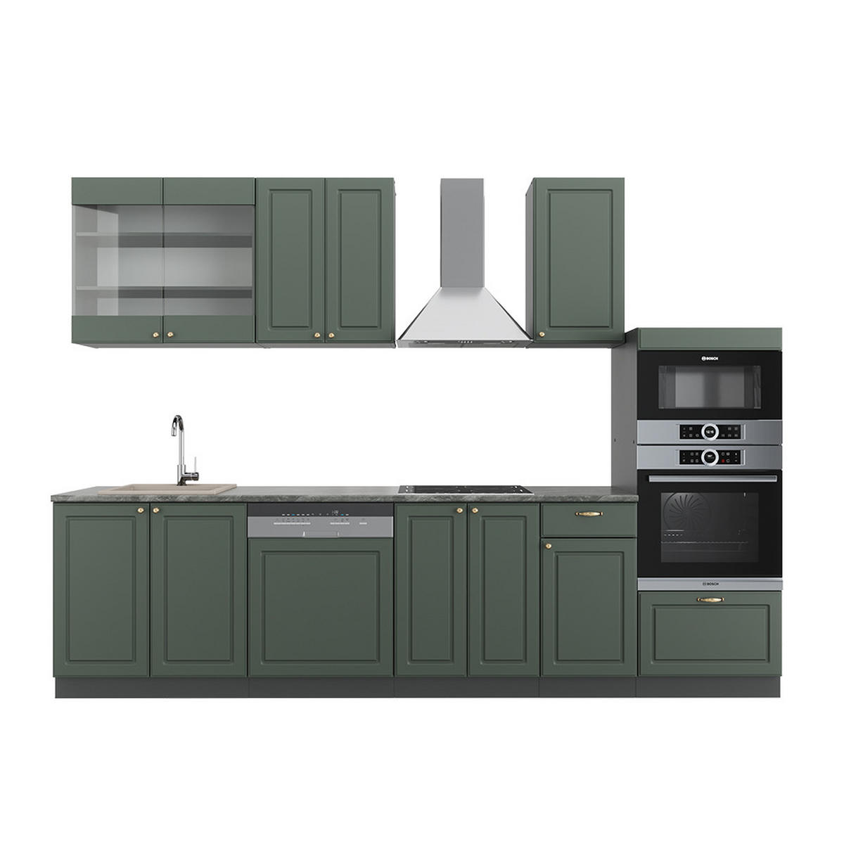 KUHINJSKI BLOK Fame-Line Zeleno-Zlatna Seoska Kuća / Antracit 300 cm s visokim ormarićem, bez radne ploče - zelena/antracit, drvni materijal (300/81.6/46cm) - Vicco