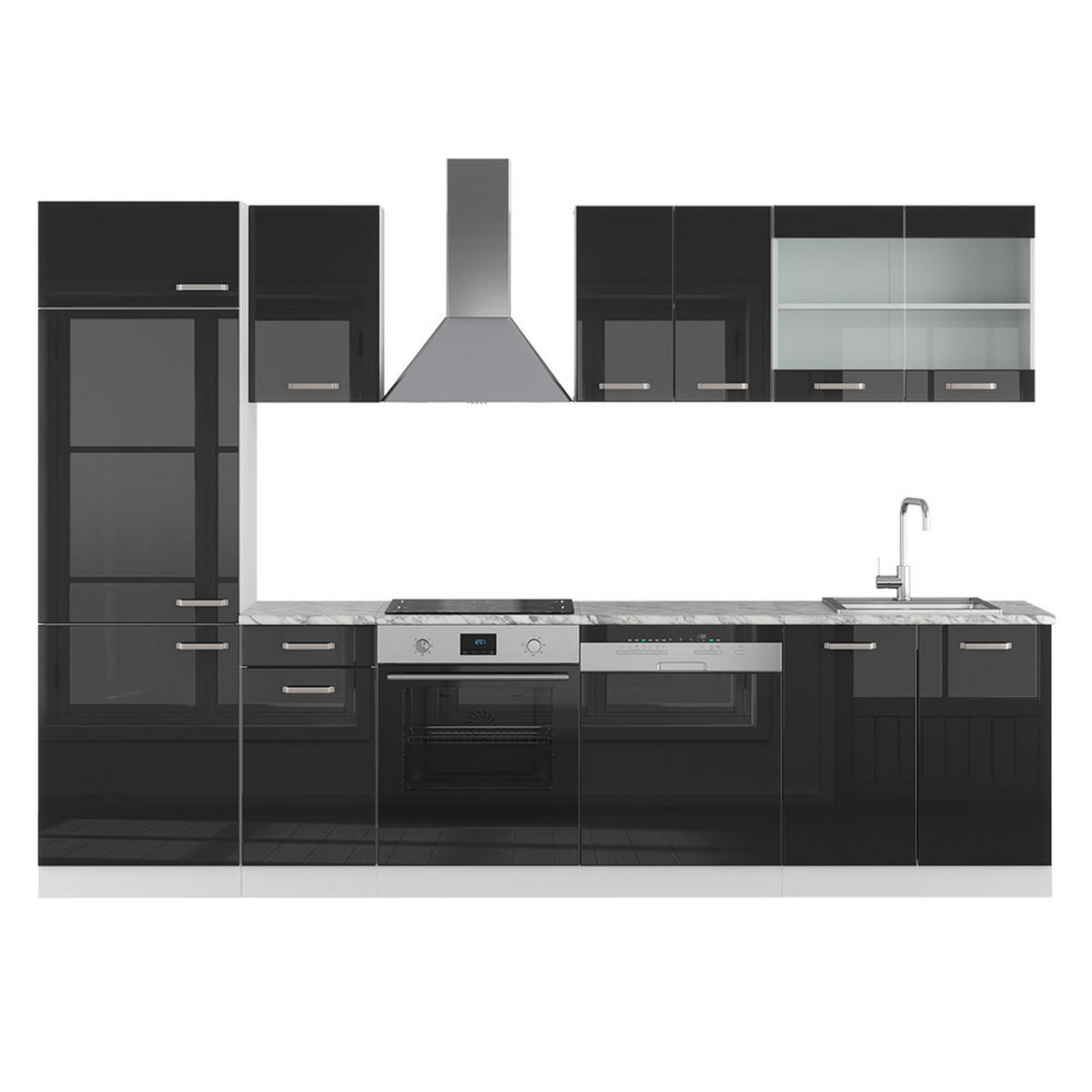 KUHINJSKI BLOK R-Line Crna Sjajna/Bijelo 300 cm bez radne ploče - bijela/crna visoki sjaj, drvni materijal (300/81.6/46cm) - Vicco
