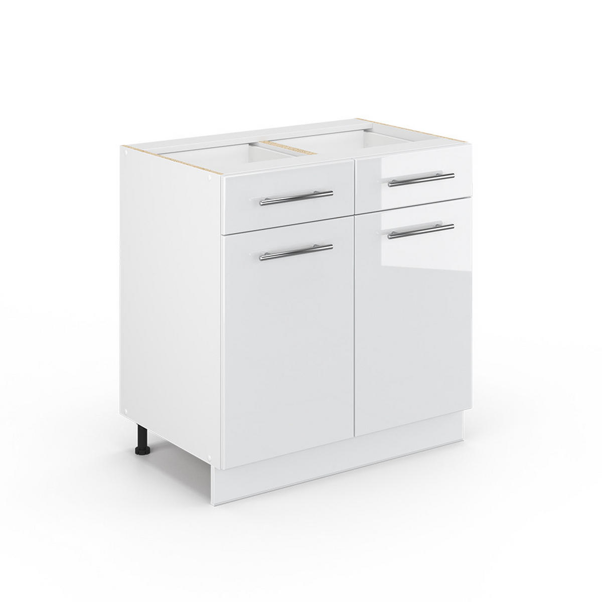 KUHINJSKI DONJI ORMAR S LADICAMA Fame-Line Sjajna Bijela 80 cm bez radne ploče - bijela/bijela visoki sjaj, drvni materijal (80/82/51.6cm) - ViccoVicco