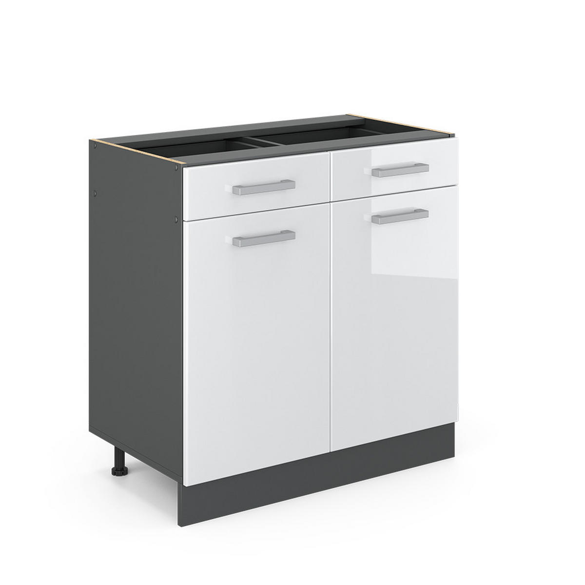 KUHINJSKI DONJI ORMAR S LADICAMA R-Line Sjajna Bijela 80 cm bez radne ploče - bijela visoki sjaj/antracit, drvni materijal (80/81.6/46cm) - ViccoVicco