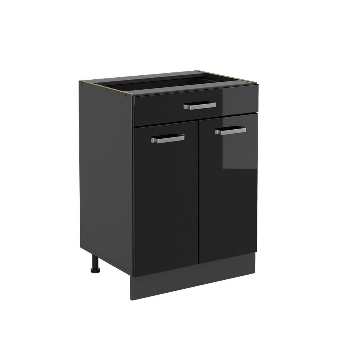 KUHINJSKI DONJI ORMAR S LADICAMA R-Line Sjajna Crna 60 cm s ladicom, bez RP - crna visoki sjaj/antracit, drvni materijal (60/81.6/46cm) - Vicco