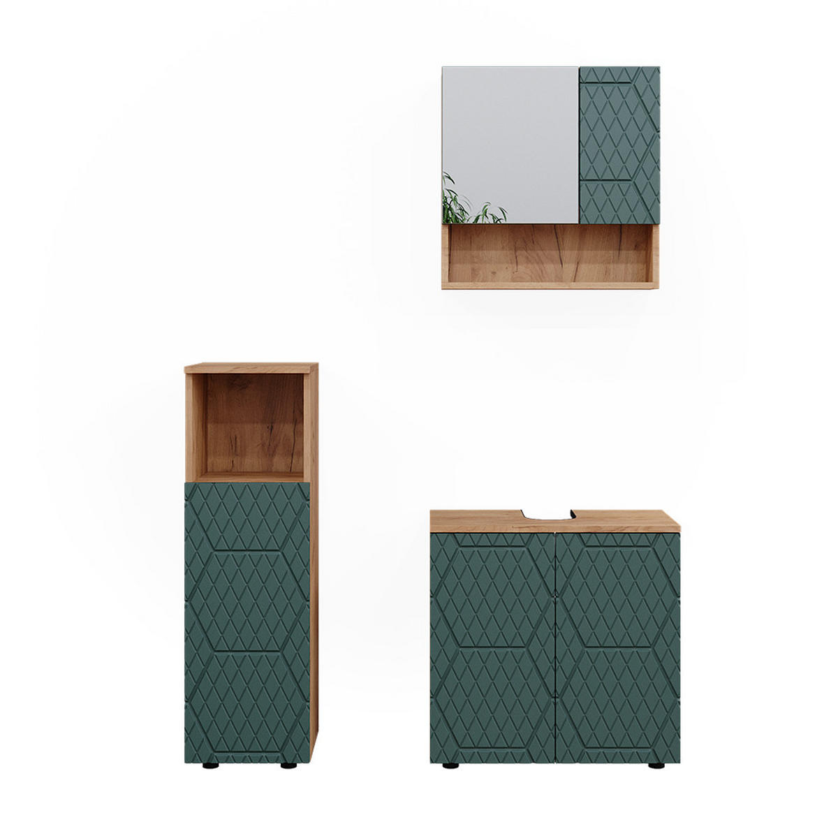 KUPAONSKI SET SA SREDNJIM ORMAROM Irma Zelena/Zlatna Snaga Hrasta 3 dijela - hrast medunac/zelena, drvni materijal (80/58.6/41cm) - ViccoVicco