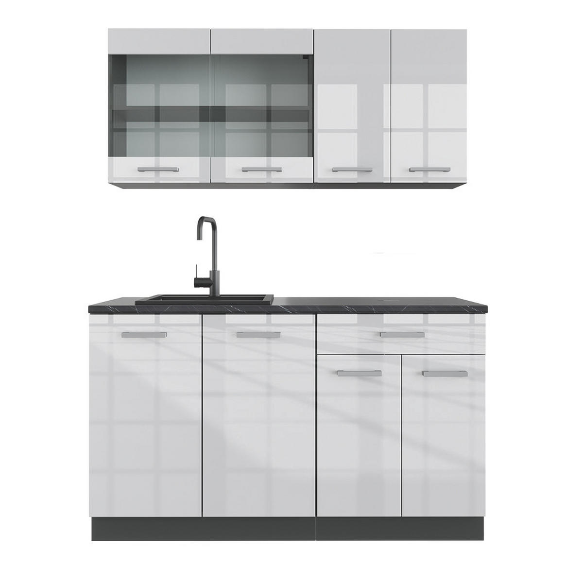 MINI KUHINJA R-Line Sjajna Bijela 140 cm , RP Antracit - bijela visoki sjaj/antracit, drvni materijal (140/81.6/60cm) - Vicco