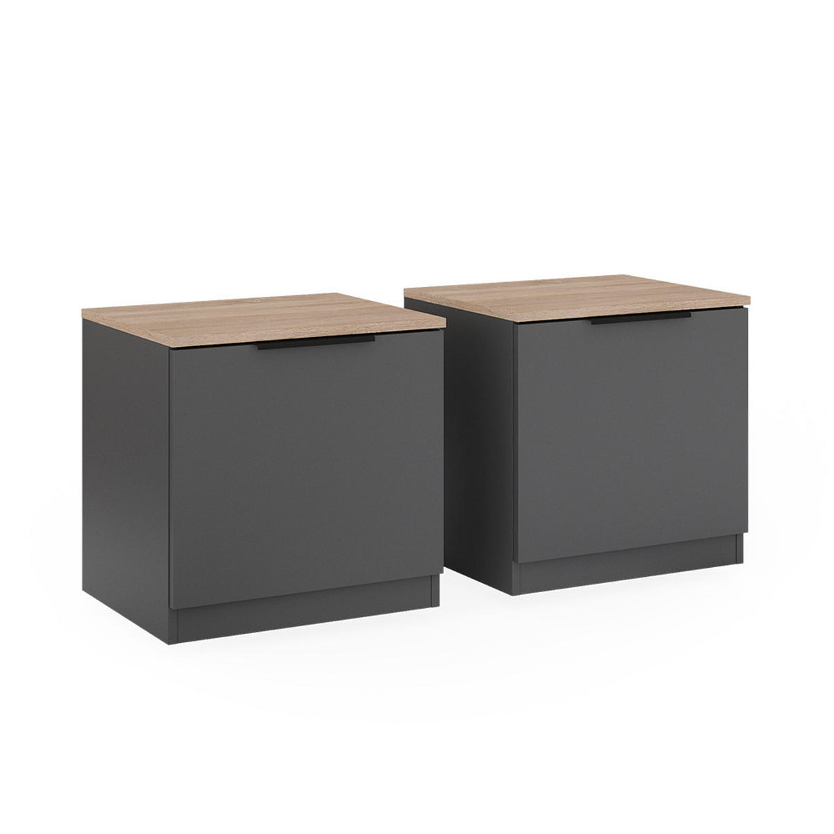 NOĆNI ORMARIĆ Betti Antracit/Sonoma Set od 2 komada - antracit/hrast Sonoma, drvni materijal (50/50/42cm) - Vicco