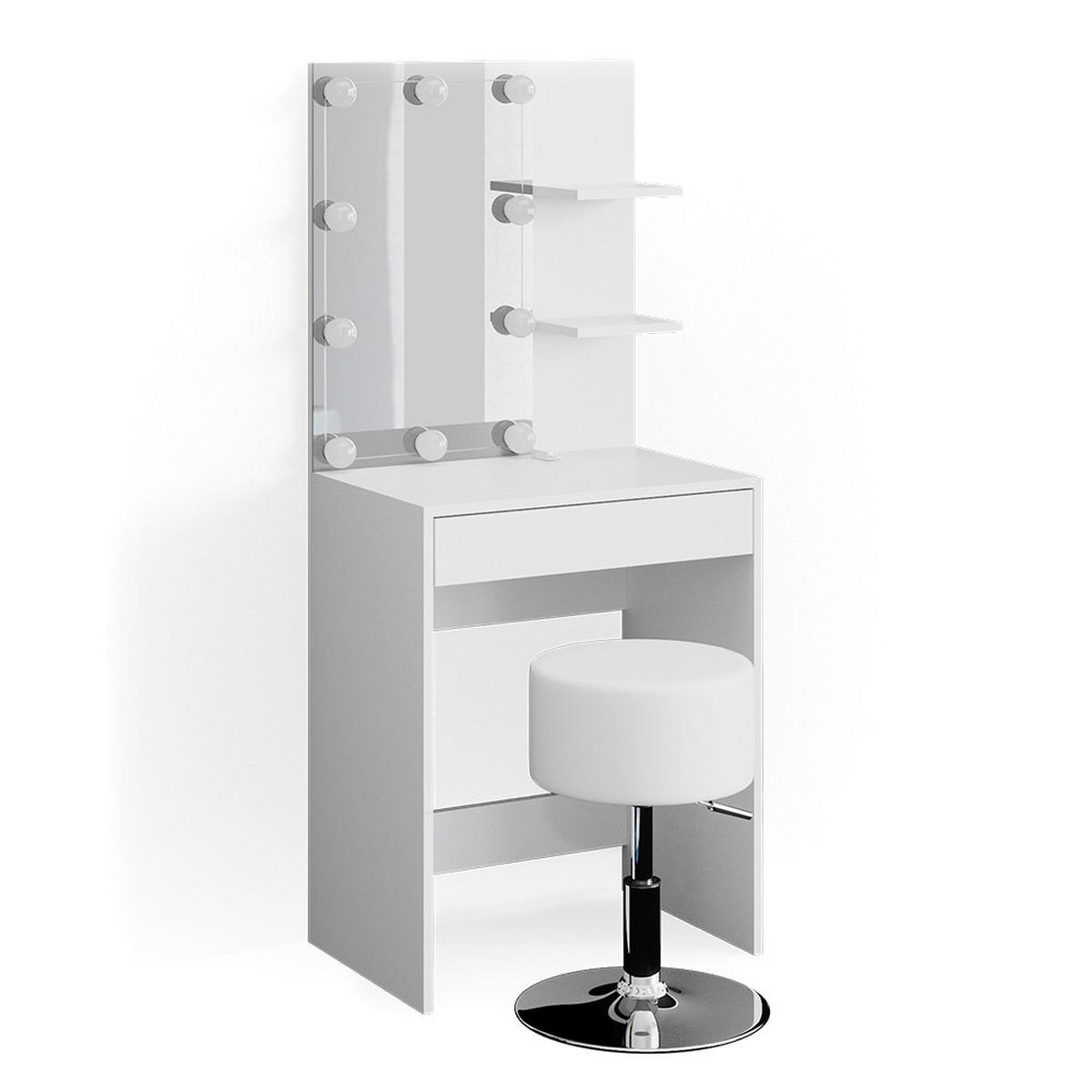 TOALETNI STOLIĆ S LED I STOLCEM Isabelle Bijela 60 cm s LED rasvjetom i stolicom - bijela, drvni materijal (60/140/40cm) - ViccoVicco