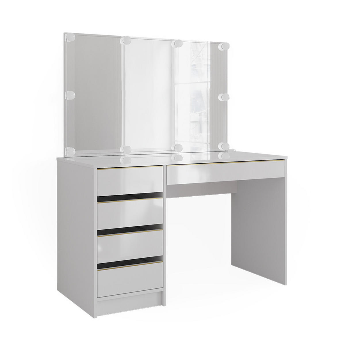 TOALETNI STOLIĆ S RASVJETOM Sherry Bijelo/Zlatno 120 cm s LED rasvjetom - bijela/zlatne boje, drvni materijal (120/75/55cm) - ViccoVicco