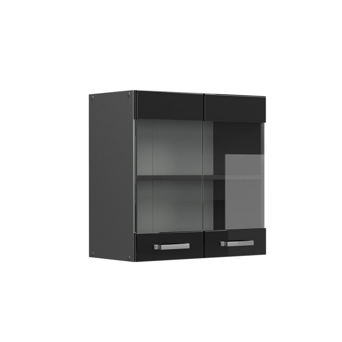 VISEĆI ORMAR S STAKLENIM VRATIMA R-Line Sjajna Crna 60 cm - crna visoki sjaj/antracit, drvni materijal (60/60/31cm) - ViccoVicco