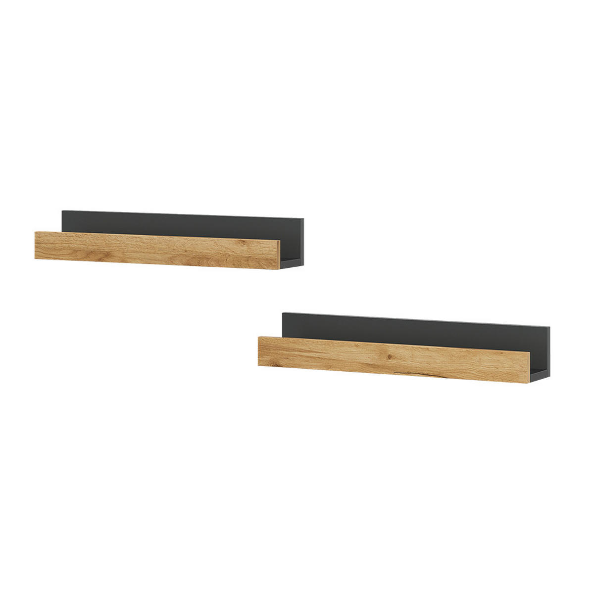 ZIDNA POLICA Tomy Antracit/Zlatna Snaga Hrasta 60 x 10 cm Set od 2 komada - hrast medunac/antracit, drvni materijal (60/10/12cm) - ViccoVicco
