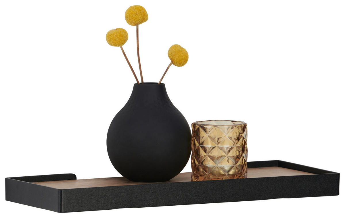 POLICA ZIDNA crna, boje hrasta metal, drvni materijal