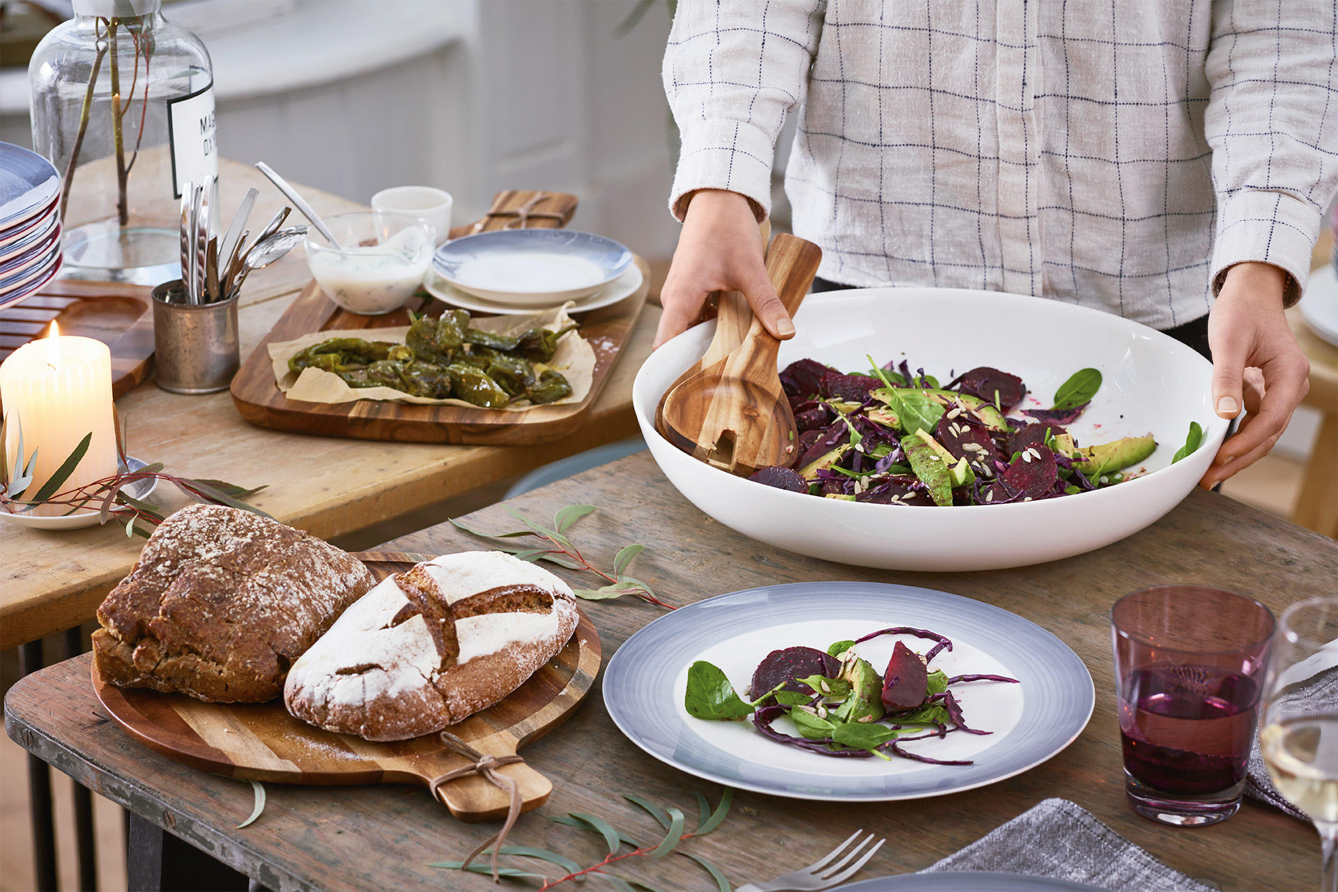 • Ako u blagovaonici ili kuhinji prevladava namještaj izrađen od prirodnih materijala kao što su drvo ili kamen, birajte pribor s dezenom za kontrast. Varijante s drvenim drškama ili potpuno drveni komadi naglasit će rustikalnost.