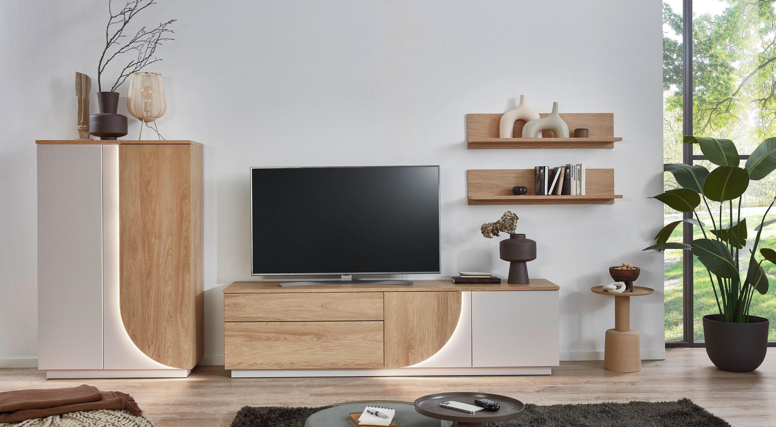 Skladno namješten dnevni boravak poziva na odmaranje i opuštanje. Ovdje provodite kvalitetne sate sa svojom obitelji i prijateljima. Prostor izgleda posebno ugodno kada je sav namještaj savršeno usklađen. Naše serije regala za dnevni boravak olakšavaju pronalaženje pravog namještaja: svi elementi jedne serije proizvedeni su u jedinstvenom dizajnu i pažljivo sastavljeni. Serije regala sastoje se između ostalog od dodatnih komoda, TV elemenata i polica – što rezultira bezbrojnim mogućnostima dizajna. Pregledajte našu široku ponudu i otkrijte svoj omiljeni look!